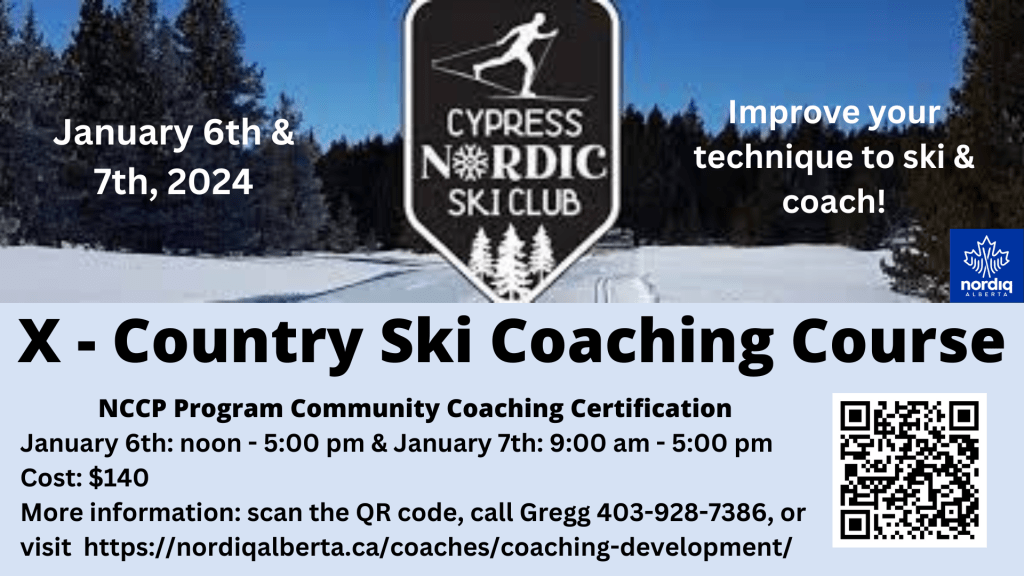 The Cypress Nordic Ski Club is pleased to be offering a coaching course in early January. See the poster below for and/or access this link for more details.